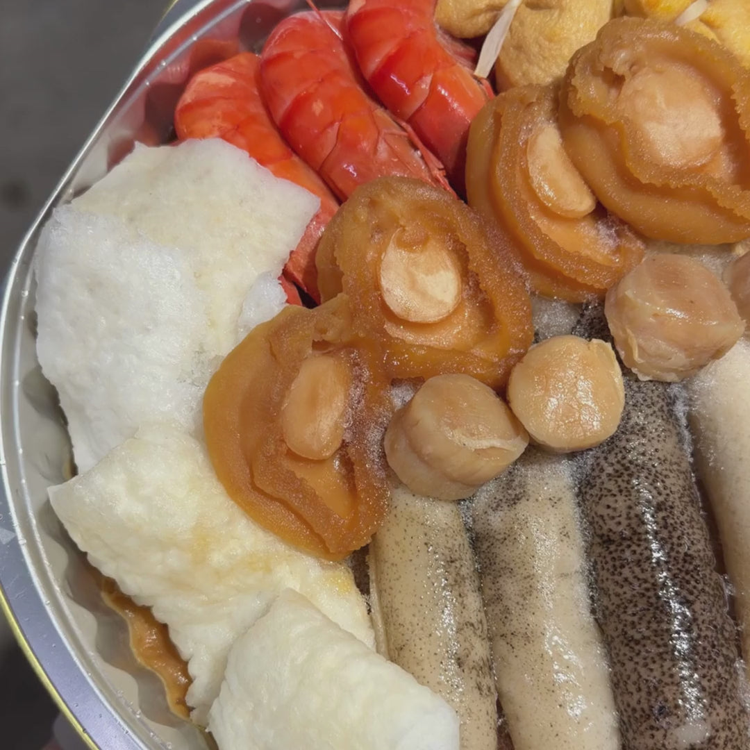 Welcome the Lunar New Year with a pot that truly means HUAT. Our Prosperity Treasure Pencai is generously layered with premium, auspicious ingredients (Dried, Scallops, Sea Cucumber, Fish Maw, Abalone, Oysters, Money Bag, Prawns, etc), each chosen for its symbolism of abundance, wealth, and family togetherness.